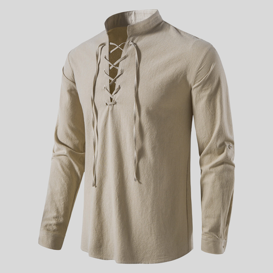 Harry Relaxed Fit Lace-Up Shirt | V-Neck Long Sleeve Shirt